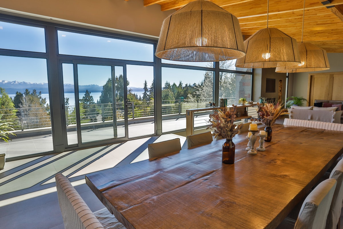 הקסם של הבית הזה הוא מיד עם הכניסה למרחב המודרני הזה מלא חיים, שטוף שמש ואור. הסלון, פינת האוכל והמטבח המאובזר חולקים חלל פתוח לחלוטין עם נופים מדהימים של אגם נהואל הואפי. דק העץ הוא המקום המושלם ליהנות משקיעה פטגונית מרהיבה. אין הגנה לתינוקות/ילדים במדרגות הפנימיות ובשני הסיפונים החיצוניים.