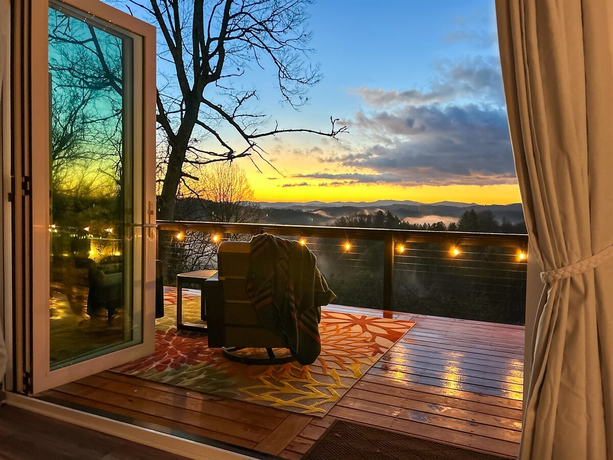 LUX mountain-top hot tub, firepit & sunrise VIEWS