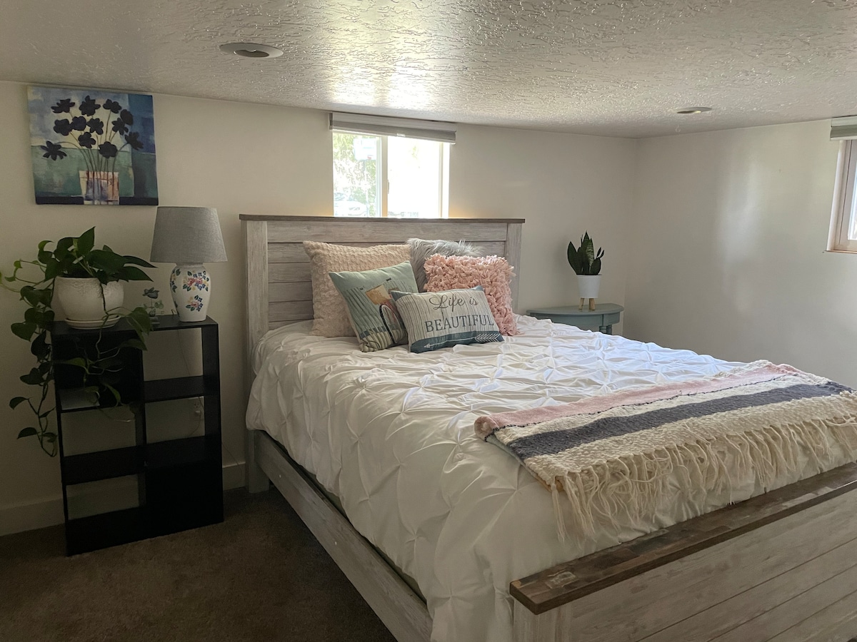 סוויטת האורחים הפרטית הזו בסידר הילס שוכנת בשכונה שקטה למרגלות הר. Timpanogos, דקות מ - American Fork Canyon, Alpine Loop ו - Murdock Trail שנותנים לכם גישה לנופים מרהיבים, טיולים רגליים, טיפוס, רכיבה על אופניים, גולף, סקי וכל דבר בחוץ. אנחנו במרחק של 10 דקות ל - I -15 ומספקים גישה נוחה לאטרקציות ולעסקים רבים של מחוז יוטה. אנחנו נמצאים רק 35 דקות לפרובו או לסולט לייק.