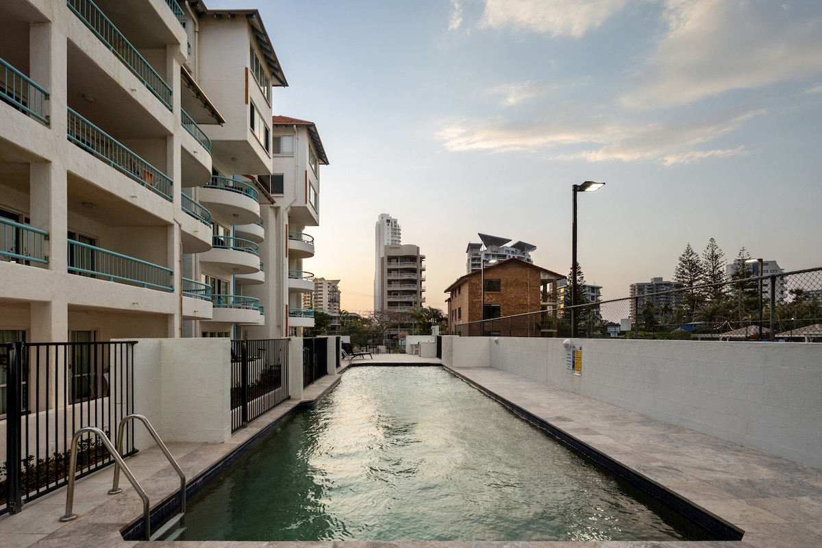 Come and enjoy a relaxing getaway in this beautiful one-bedroom apartment. Unwind in a calm, stylish space with a large pool, heated spa and sauna, with the beach just a 3-minute walk away. The G: Link light rail is only a short stroll away, providing quick and easy access to Cavill Ave, Pacific Fair and the Star casino. Complimentary private, secure underground parking is included, with additional guest parking available on a limited basis. Enjoy convenient lift access to the apartment