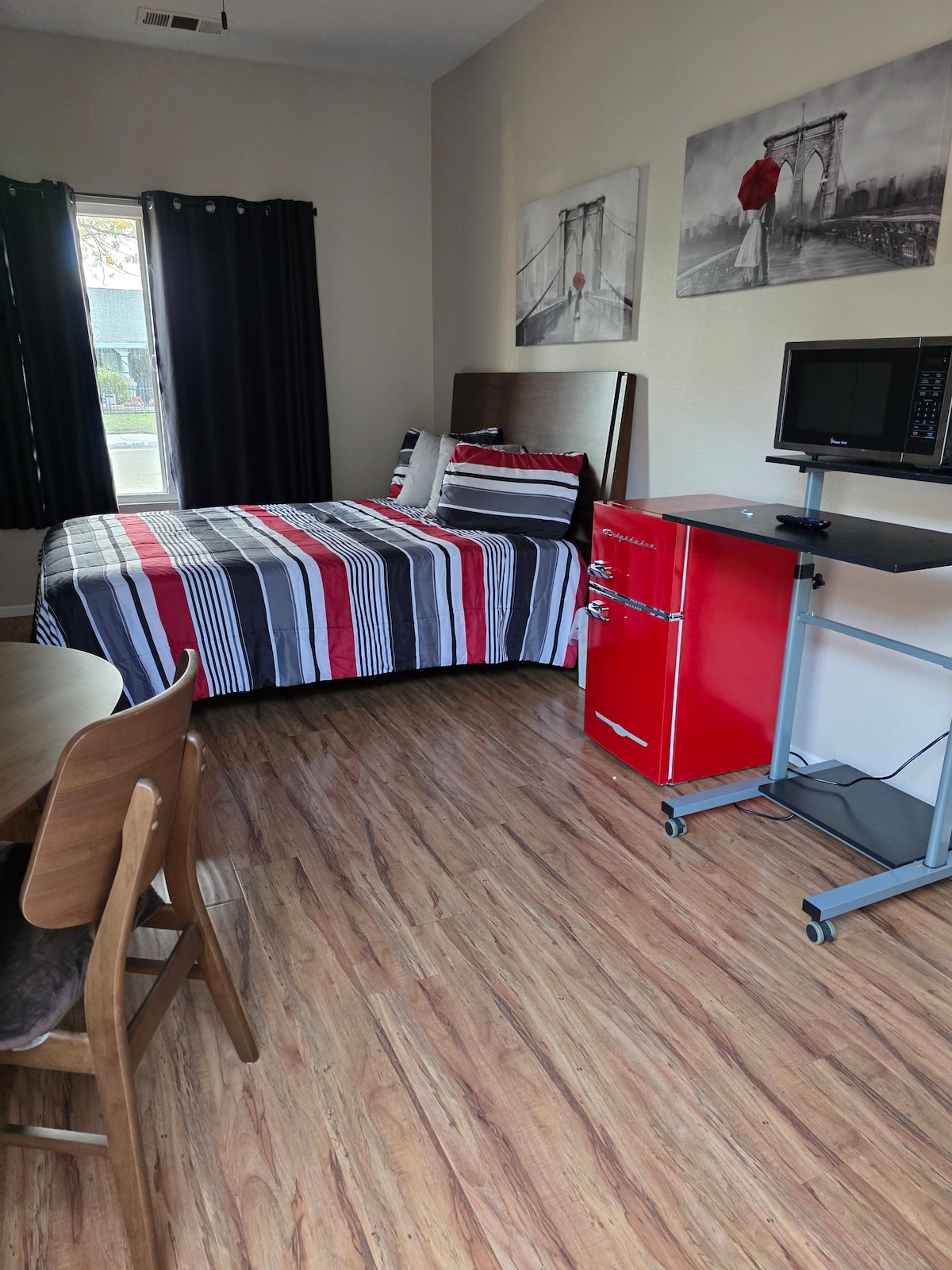 חלל נעים ונקי, שכולו שלכם. מיטת קווין סייז יוקרתית. טלוויזיה עם רוקו בלבד ונגן DVD עם כמה דיסקים אינטרנט מהיר בספקטרום. אין מכשירי גז - הבישול כולל מיקרוגל בלבד. מקום חניה פרטי מול יחידה היחידה צמודה לבית הראשי (יש לה כניסה משלה ואין לה גישה) חשוב! חשוב לקרוא את כללי הבית. 1 1/2 מייל למכולת (Stater Bros) וחנויות אחרות, מסעדות, מזון מהיר ומכבסה.