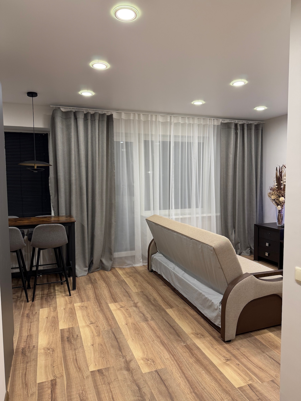 דירה מרוהטת, בהירה ומסוגננת בגודל 54.6 מ"ר להשכרה. הדירה מצוידת בכל הפריטים הדרושים, כלומר סירים, מחבת, כלים, מגבות, מצעים, קפה, תה, מייבש שיער. בחדר השינה, מיטה זוגית בגודל 160 מ' ורהיטים אחרים. בחדר הפנאי פינה רכה גדולה מאוד, רוחבו של חלק השינה - 170 מ'. אפשר לראות פרקל דרך החלונות, הרבה צמחייה. בדירה יש שתי מרפסות. ליד, רק 100 מטר משם, סופרמרקט מקסימה, מגרשי משחקים לילדים, תחנה, תחנות טעינה למכוניות חשמליות.