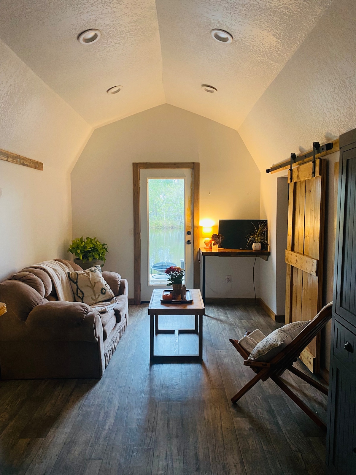 Escape to this cozy waterfront cottage tucked in a quiet & safe neighborhood. Enjoy a tranquil water view with a relaxing fire pit right by the water—perfect for sunset chats or stargazing nights. Inside, unwind in a cozily designed space ideal for couples, solo travelers or small families seeking calm and comfort. Sip your morning coffee on the deck, watch the sunset over the water, and fall asleep to the sounds of nature. Your perfect retreat for rest, romance, and relaxation awaits.