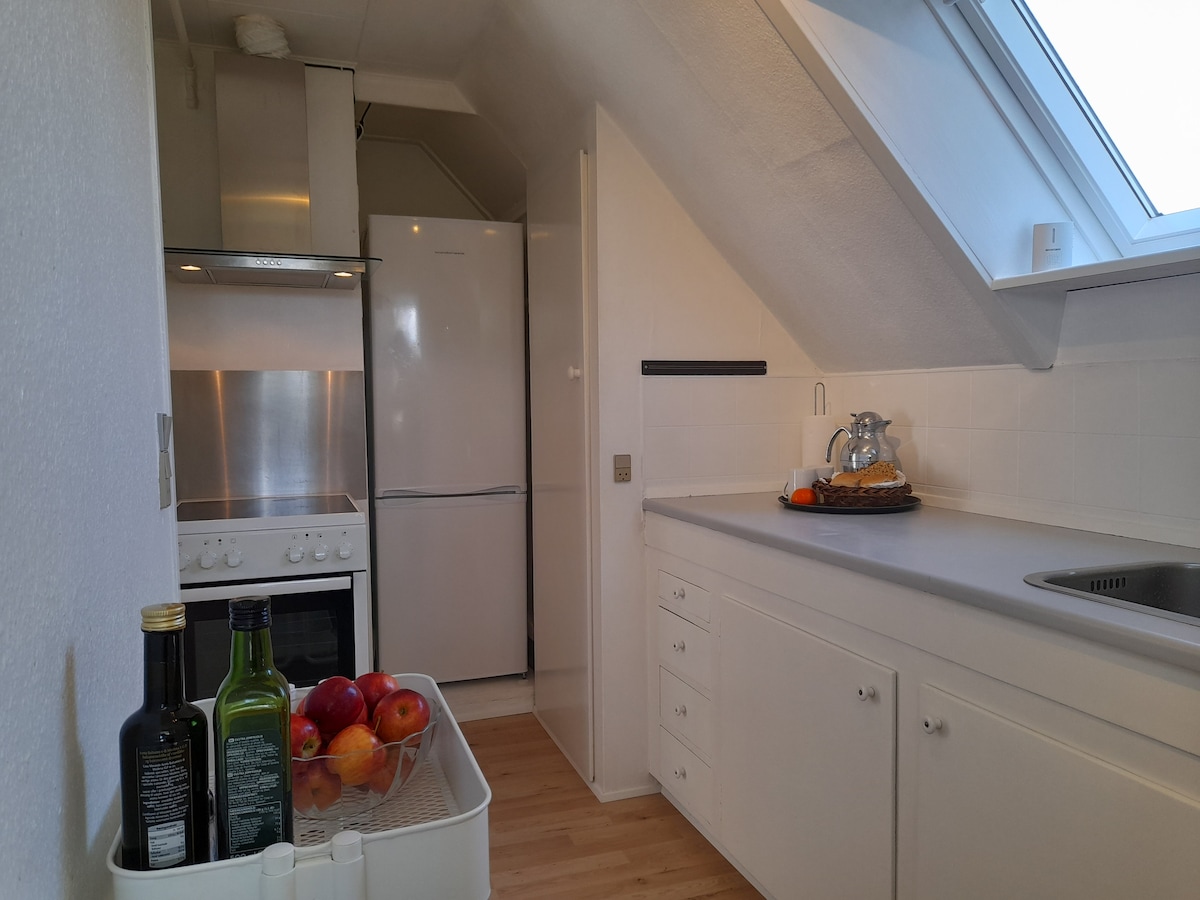 דירת שני חדרי שינה מוארת ויפה המשקיפה על העיר הדרומית. הדירה מרוהטת במיטה זוגית (180X200 ס"מ), ספה, שולחן אוכל וכו '. המטבח מצויד בסירים / צלחות וכו 'כדירת נופש. יש חדר שירותים בדירה וגישה לחדר האמבטיה במרתף. אפשר להשתמש בגינה עם מרפסת מקסימה. הדירה קרובה לקניות ויש בה קווי אוטובוס טובים. יש 250 מטר לתחנה הקרובה ביותר. 4A ו-11 נוסעים לעיתים קרובות לעיר. חניה חינם על הכביש.