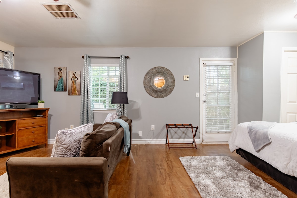 סוויטת חדר השינה הזו בבייקרספילד, קליפורניה, מושלמת למטיילים. המרפסת מספקת מקום מושלם להירגע עם קפה בבוקר או כוס יין בערב, ופינת האוכל החיצונית תהיה המקום להירגע עם ארוחה בסוף יום עמוס. יש טלוויזיה עם נטפליקס כדי שתוכלו לעמוד בקצב של התוכניות האהובות עליכם ו - Wi - Fi כדי שתוכלו לשמור על קשר עם חברים ובני משפחה בבית. מיזוג האוויר מוודא שהשהות שלכם תהיה נוחה, לא משנה מהי העונה.