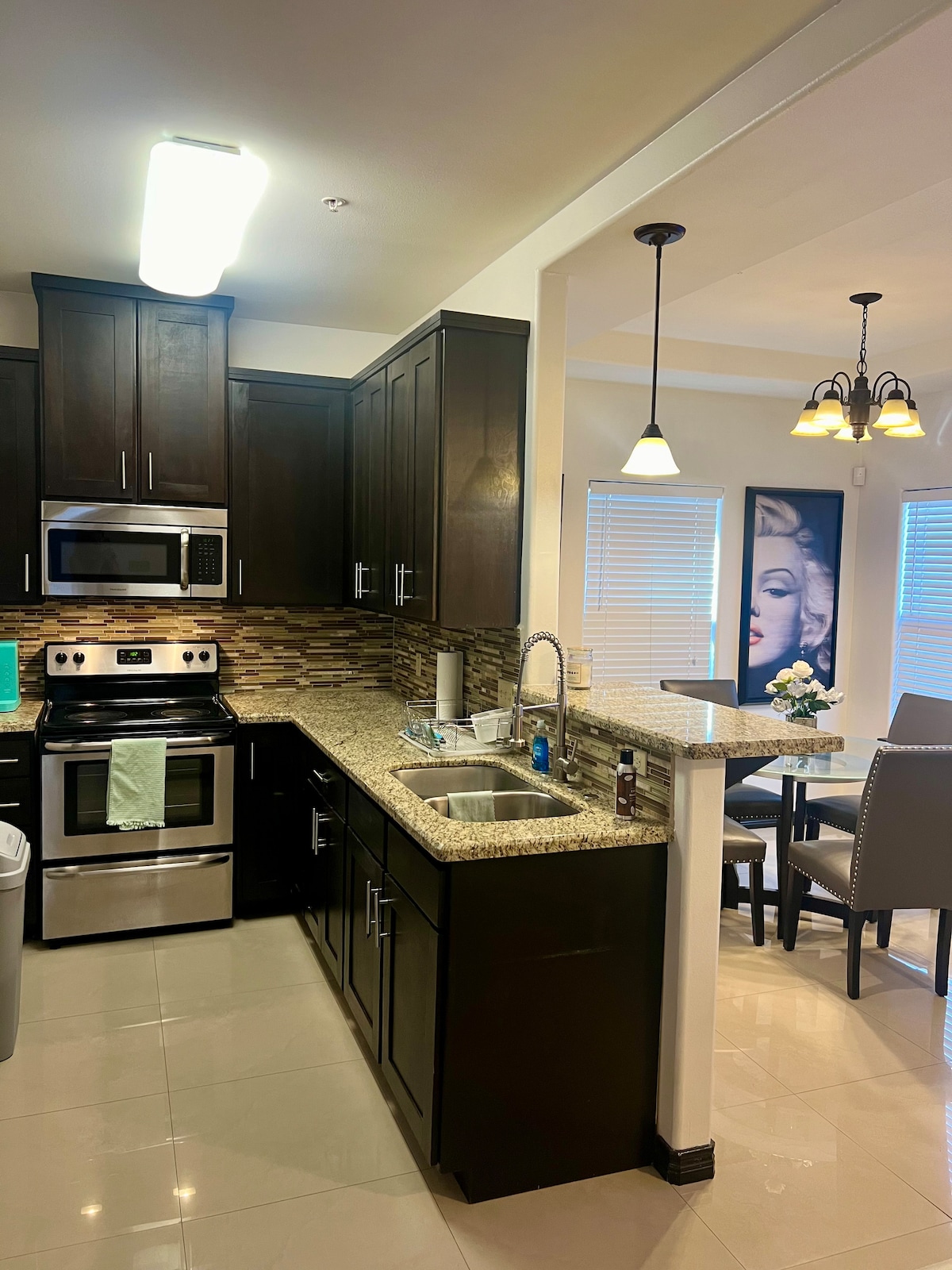 מצאתם את הבית שלכם מחוץ לבית. דירת היוקרה והמגודרת שלנו, הממוקמת במיקום מרכזי, מתהדרת בסוויטה ראשית מרווחת עם מיטת קינג סייז, חדר ארונות וחדר רחצה צמוד. בסוויטה השנייה יש מיטת קווין סייז מפוארת וחדר רחצה ושירותים שני מעבר למסדרון. בדירה המאובזרת הזו יש את השירותים לאורח שהייתם מצפים לקבל מהמלון האהוב עליכם עם כמה תוספות כדי לגרום לכם להרגיש בבית. פרטי, שקט וממוקם קרוב למסעדות, הקניון, חנויות וחנות הסופר!