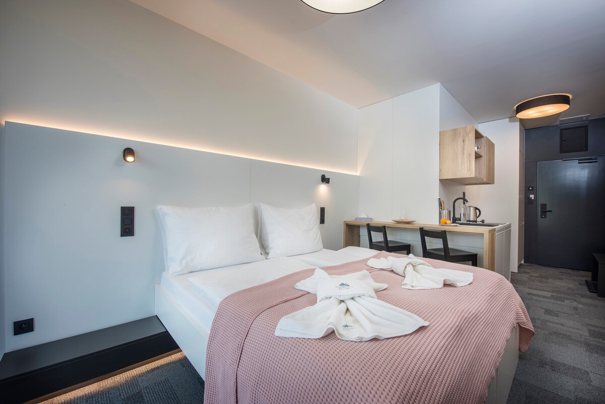 דירת פרימיום Jasna ממוקמת בקומה השנייה של אתר הנופש Lúčky Holiday Resort בסביבה האטרקטיבית של הטטרות הנמוכות. בדירה עם חדר שינה אחד יש מרפסת עם מקומות ישיבה ונוף להרים. כל פנים הדירה מואר בצורה מרשימה. יש מיטה זוגית נוחה, טלוויזיה חכמה, מטבחון מאובזר, חדר רחצה (מקלחת, כיור, מכונת כביסה) ושירותים נפרדים. הקיבולת של הדירה היא 4 אנשים.