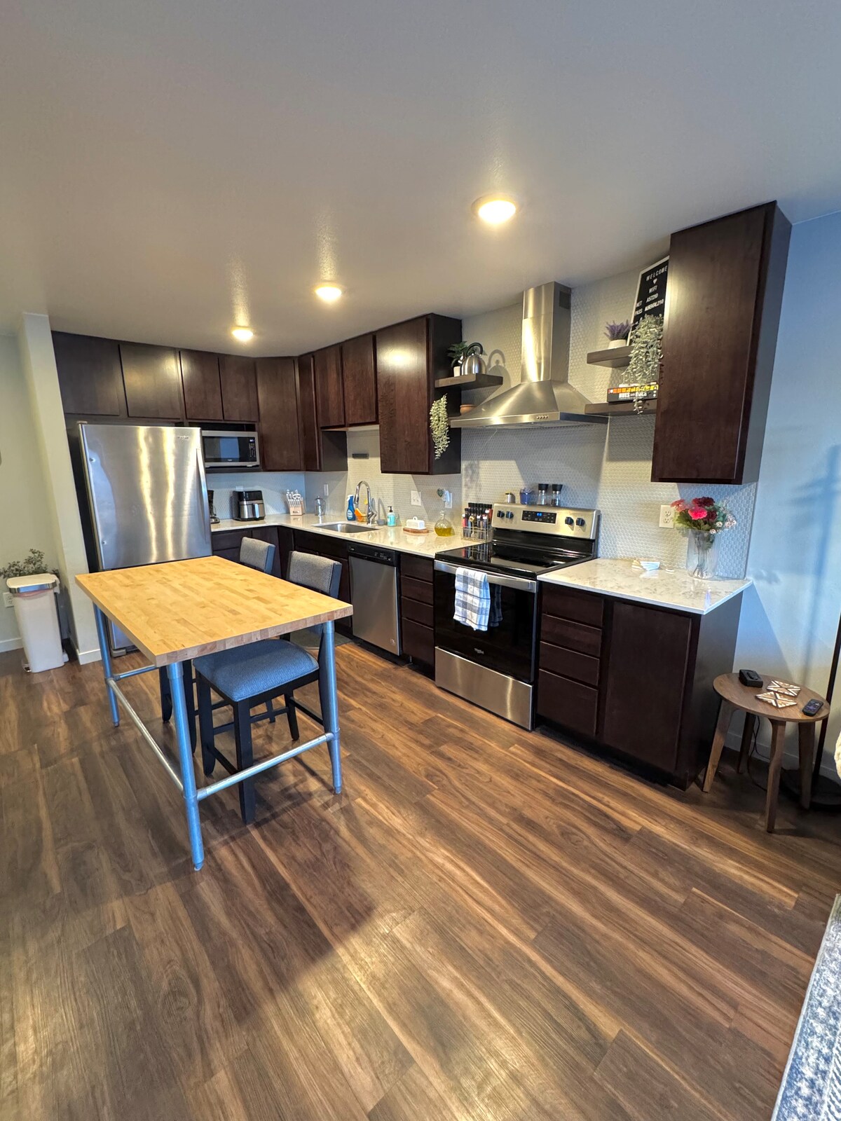 השמש תמיד זורחת בדירה המרווחת הזו! ציור קיר מלא הוא הדבר הראשון שתראו יחד עם דוכן אוכל קלאסי. יש שפע של צבע ואופי. המרפסת מזמינה אורחים לקפה מוקדם בבוקר או ליין בערב. מחוץ לדלת ובירידה במדרגות שוכנת הבריכה הקהילתית הפתוחה עונתית מיום הזיכרון ועד יום העבודה. אנחנו שמחים לחלוק את המקום הזה, שקיבל השראה מהטעם והסגנון האקלקטי של משפחת נובוגראץ.