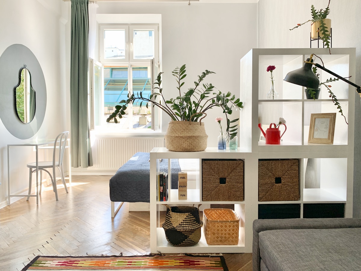 Sunny Old Town Studio, Garden View & High Ceiling