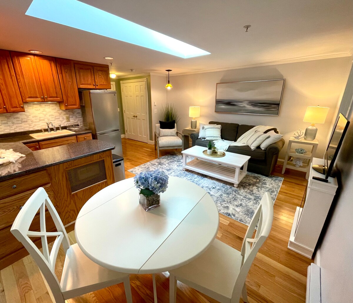הדירה המרוהטת החדשה ממוקמת במרכז כל מה שיש לאוגונקוויט היפה להציע. רק חמש דקות הליכה לחוף ואפילו קרוב יותר למסעדות ולברים החשובים של Ogunquit, זה המיקום הנחשק ביותר לשהות באוגונקוויט. תיהנו מחניה חינם באתר, מנגל וגישה לבריכה באתר. אני מארחת מצטיינת ב - Airbnb ואמנית, שהמופע הריקוד הראשון שלו היה ב - Ogunquit Playhouse במעלה הרחוב. אני מעריך את ההשכרה שלך כדרך לתמוך באמנים מקומיים.