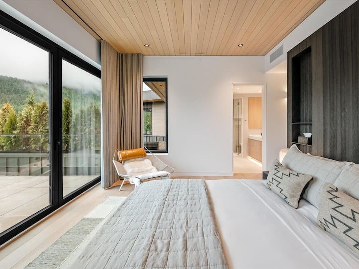 חדר שינה 3: מציג מיטת קווין סייז נוחה, מלווה בחדר רחצה צמוד הכולל מקלחון. פטיו צנוע עם נופים מרהיבים של הרי וויסלר ובלקומב משותף בין שני החדרים.