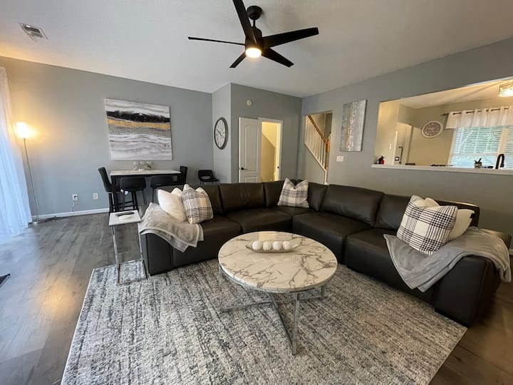 תהיה לכם גישה לחדר משותף: שמצויד כמעט בכל מה שצריך כדי להכין ארוחות טעימות. אזורי האוכל והשולחן במטבח מספקים שפע של מקום כדי ליהנות מהיצירות הקולינריות שלכם. השירותים לאורח במטבח כוללים מכונת קפה, טוסטר ותנור, המאפשרים לכם להתחיל את היום עם כוס קפה טרי וליהנות מארוחות ביתיות בשעות הפנאי שלכם. סלון מרווח: ברגע שאתם נכנסים לסלון הזה, אתם מתקבלים על ידי שפע של אור טבעי שזורם דרך דלתות הזכוכית הגדולות. התקרה הגבוהה יוצרת תחושה של פאר ומרחב, בעוד הספה המפוארת מזמינה אתכם לשקוע ולהירגע וזה המקום שבו אתם מרגישים באמת שייכים.