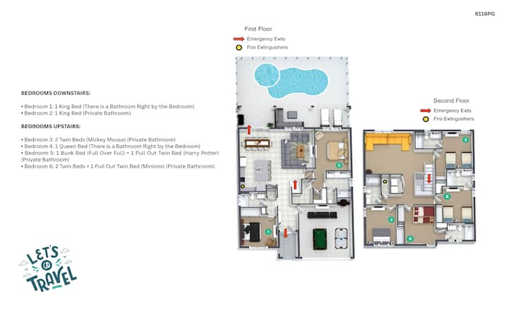 חדר שינה 6: 2 מיטות זוגיות + מיטה זוגית אחת נשלפת (Minions )( חדר רחצה פרטי).