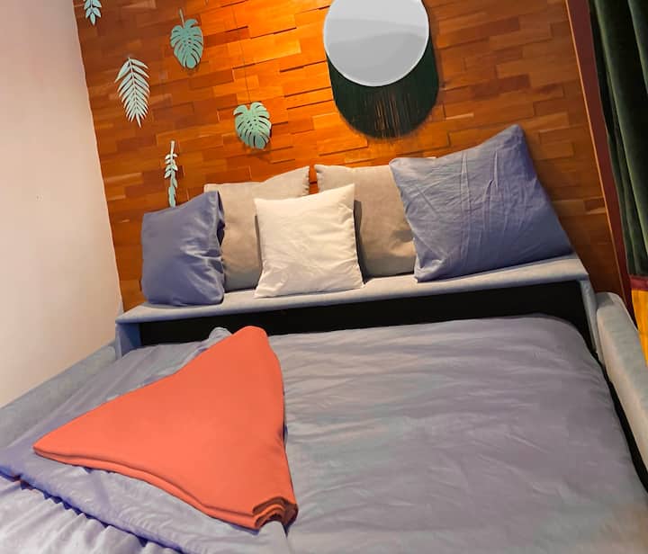 דירת סטודיו מעוצבת - מרפסת שמש וטרקלין גן
