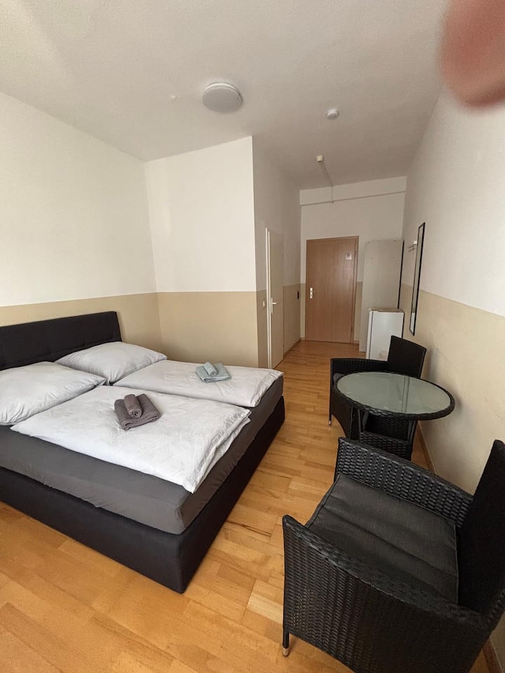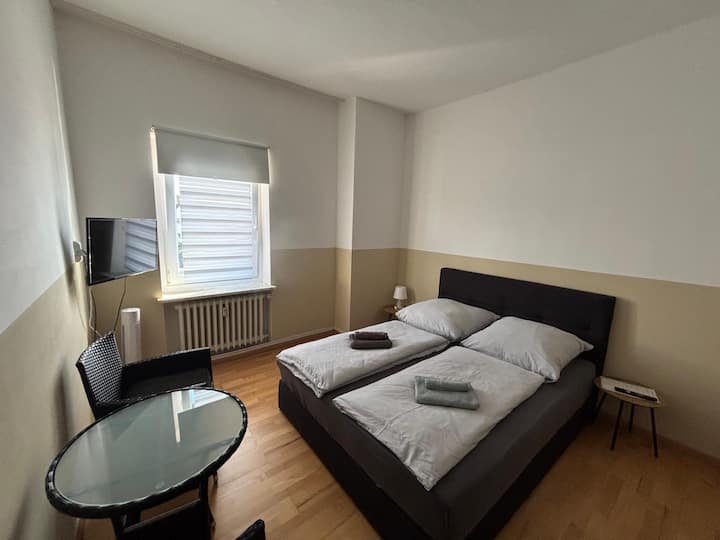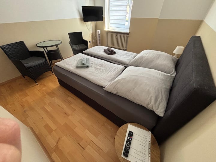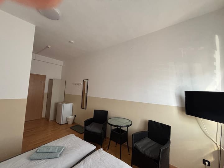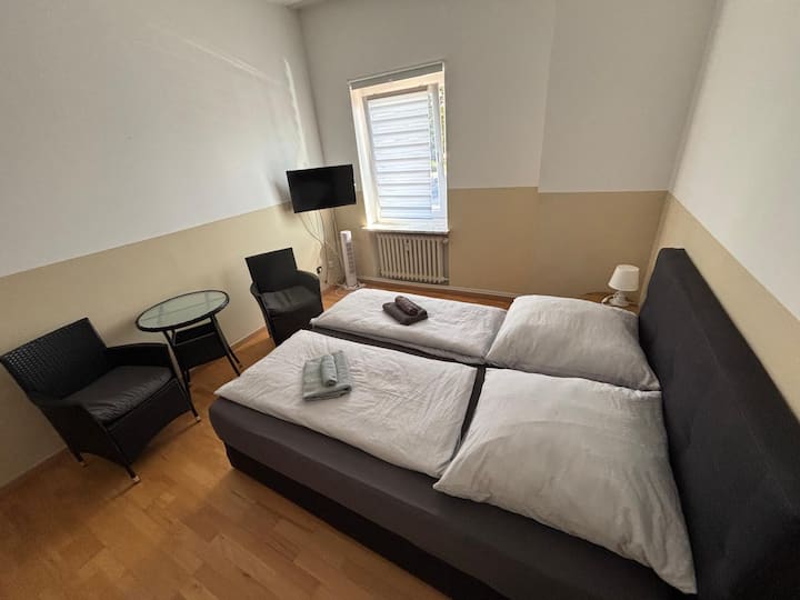 חדר זוגי עם טלוויזיה בחדר הרחצה ליד בראונשווייג (9)