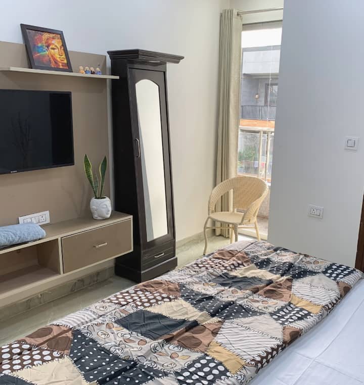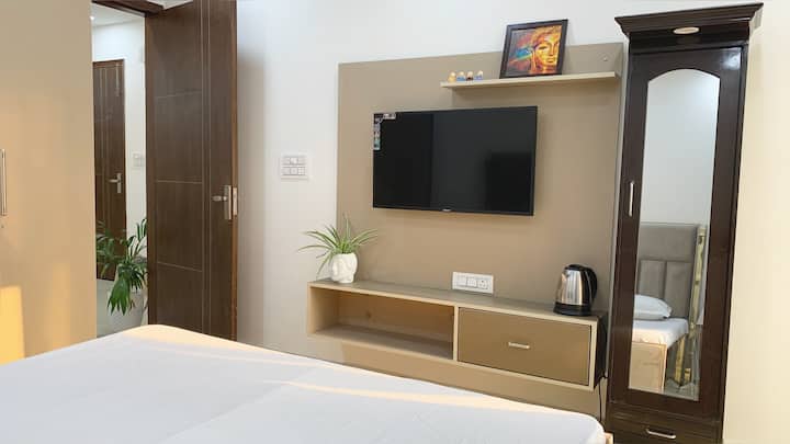 חדר מיזוג אוויר ידידותי למשפחות בדלהי עם מרפסת