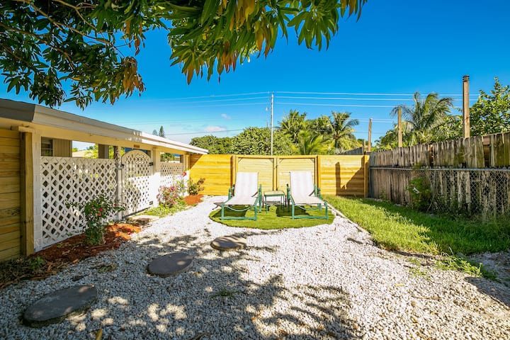 קרוב לחוף יפהפה, גינה אחורית שלווה.