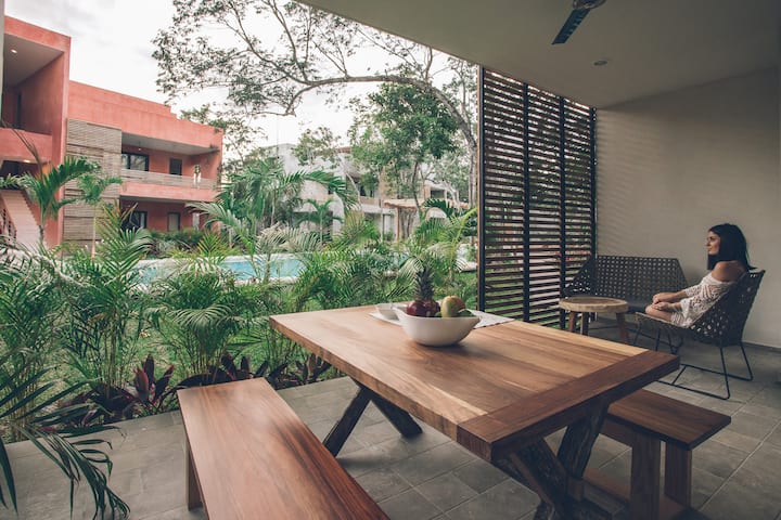 Panacea Condo: סוויטת 2 חדרי שינה עם בריכה וחדר כושר עם נוף לפאטיו