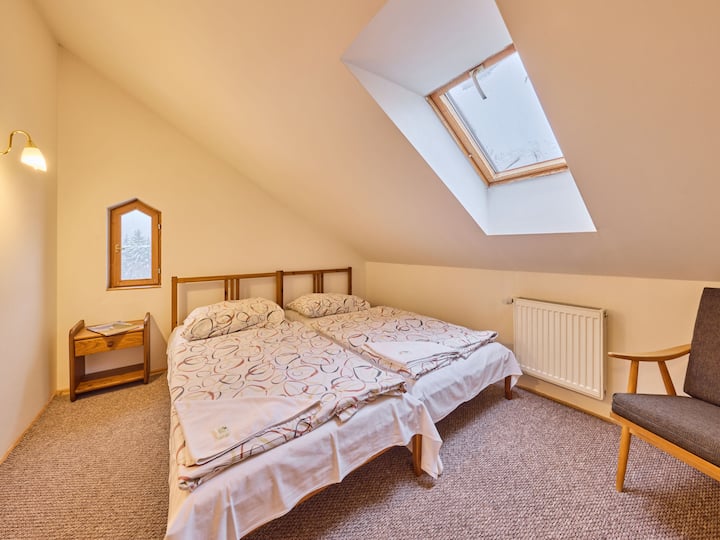 בית דירות כפרי ונעים "Stříbrný pramen ", מנותק. באתר הנופש, 200 מ' מהמרכז, במיקום שטוף שמש, 500 מ' מאזור הסקי. פרטי: פרגולה (10 מ"ר). בבית: מערכת חימום מרכזית. החלפת מצעים (בתוספת תשלום). החלפת מגבות (תוספת תשלום). ניקיון חדרים לפי בקשה (בתוספת). חניה בבית, חניה ציבורית בתשלום נוסף. מכולת 300 מ', מסעדה 50 מ', תחנת אוטובוס "Janské Lázně - Lesní dům" 300 מ', תחנת רכבת "Svoboda nad Úpou" 3.3 ק"מ, פארק "Farmapark Muchomůrka" ק"מ אחד, בריכת שחייה חיצונית 7 ק"מ, בריכת שחייה מקורה, אמבטיות תרמיות 400 מטר. טניס 1 ק"מ, מיני גולף 400 מ', שביל אופניים 100 מ', רכבל 600 מ', מעלית סקי 300 מ', מעלית כיסא 500 מ', מעלית גונדולה 600 מ', מדרונות, השכרת סקי 300 מ', בית ספר לסקי 400 מ', בית ספר לסקי לילדים 300 מטר, מזחלות, מסלול סקי קרוס קאנטרי 700 מ'. אטרקציות בקרבת מקום: Lanovka na Černou horu 600 מ', Janské Lázně Spa, Stezka korunami stromů 1 ק"מ, bobová dráha 5 ק"מ, Pec pod Sněžkou, Relaxpark, bobová dráha 11 ק"מ, Vrchlabí 10 ק"מ, Trutnov 12 ק"מ, Malá Úpa 15 ק"מ, Zoo Dvůr Králové, Adršpach 35, Karpacz 40 ק"מ. ניתן להגיע בקלות לאזורי סקי ידועים: אתר הסקי ČERNÁ HORA - PEC, Mladé Buky במרחק 5 ק"מ, Horní Malá Úpa במרחק 16 ק"מ, Špindlerův Mlýn במרחק 30 ק"מ. מסלולי הליכה: krkonošské naučné stezky. שימו לב: אין מעלית. הבעלים מתגורר באותו מקום מגורים. הדירה נמצאת באזור עם תנועה מוגבלת.