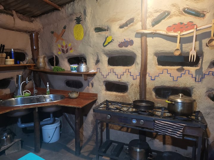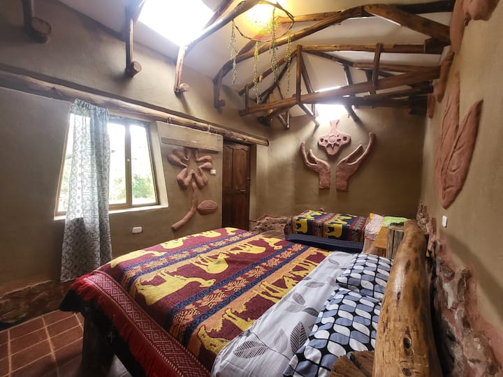 אתם תשהו באחד מבתי האצה החדשים שלנו, שנבנתה לגמרי ביד ביד מלבני אדובי ומצוידות בחשמל וב - Wi - Fi מסביב לשעון. זה 'חדר המשפחה' שלנו עם מיטת קווין סייז גדולה ומיטה זוגית אחת, מושלם לקבוצות או למשפחות (כל הגילאים מוזמנים!). כל פרט בחדר הזה עוצב בעבודת יד באהבה ובדאגה, הבולטים ביותר בציורי הקיר האינקה היפים על קירות עלי קוקה, פרחים וידיים של אינקה המציעות הצעות לפצ'מאמה (אמא אדמה). הנכס מטופל גם בשמנים חיוניים שאנחנו עושים כאן בסלון האקולוגי לפני ההגעה. אנחנו מקווים לגרום לכם להרגיש כל כך רצויים בבית.