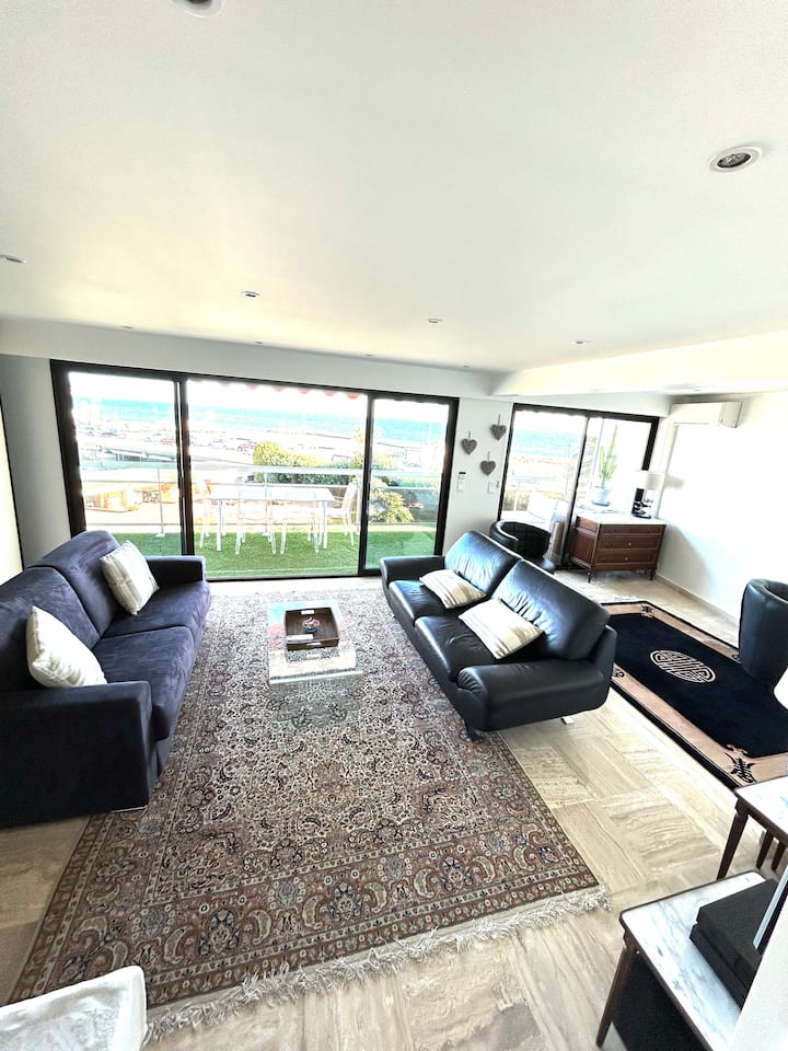 דירה מרהיבה על חוף הים, מרפסת וחניה