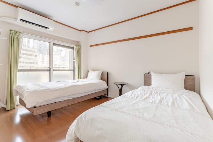 סה"כ 37.79. 2 חדרי שינה(9.95 מ"ר ו -7.44 מ"ר + סלון). 10 דקות הליכה מתחנת JR אוסקה, 3 דקות הליכה מתחנת רכבת תחתית. מיטה זוגית ו -2 מיטות יחיד. חדר ללא עישון. אורחים לא רשומים אינם רשומים. כל האורחים נדרשים לחתום על חוזה השכירות למגורים (כללי הבית. יש לחתום על שני עותקים של החוזה. אחד הוא בשבילכם והשני הוא למארח) ולמלא את טופס הרישום לאורחים (שמכם, המגדר, תאריך הלידה, מספר הדרכון וכו ') עם ההגעה. הדרכונים שלכם יועתקו על ידי המארח.
