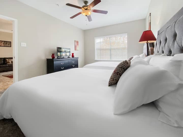 →שני חדרי שינה ענקיים מחכים, עם ארון גדול, שידה, קולבים, סל כביסה וטלוויזיה 32 אינץ' עם מקל אש אמזון לבידור נוסף.