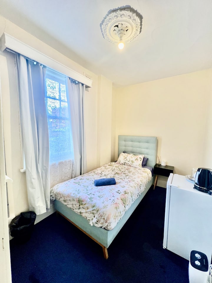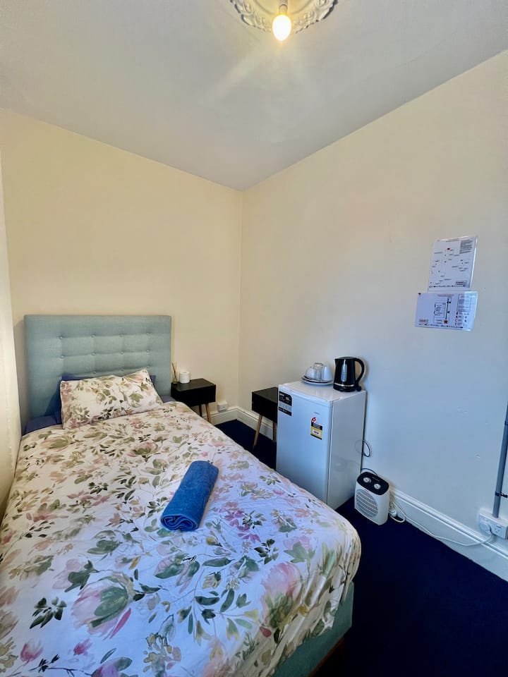חדר פרטי קטן מרוהט חלקית עם מיטת יחיד