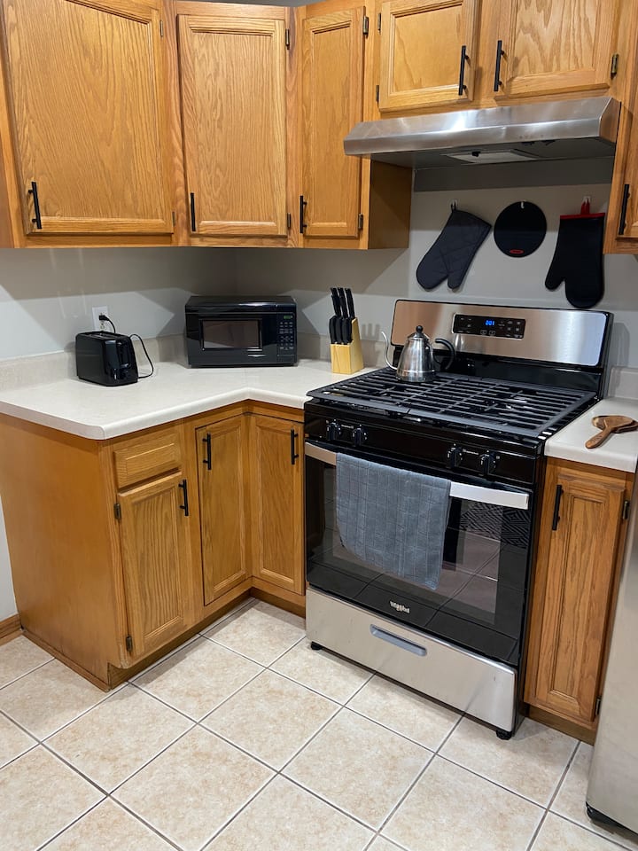 המטבח המאובזר הוא גולת הכותרת של הבית הזה. בין אם אתם שפים מנוסים או פשוט נהנים לבשל, אתם תעריכו את מכשירי החשמל, את שטח השיש בשפע ואת ארונות האחסון השופעים. זה המקום המושלם להכין ארוחות טעימות ולבדר אורחים. יש תבלינים שהושארו במקרר. החלטנו להשאיר קצת מיונז "קהילתי ", קטשופ, חרדל וכו '. אתם מוזמנים להשתמש בהם במידת הצורך!