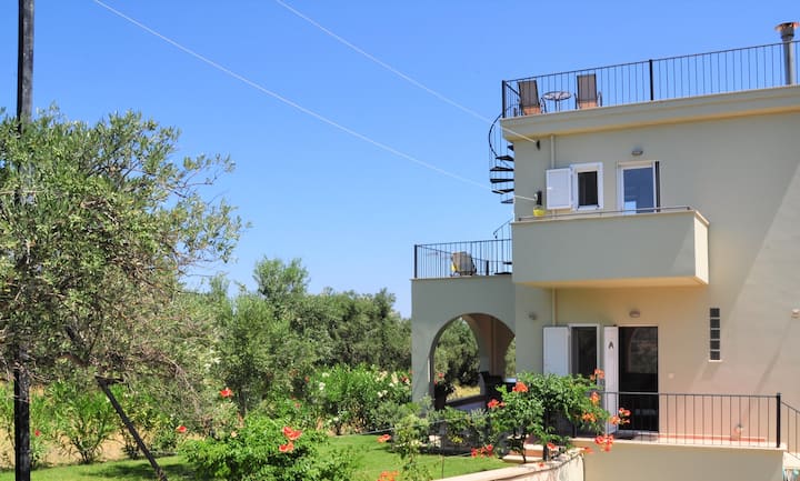 ממיטת הקווין סייז בחדר השינה הראשי יש נופים מרהיבים של הים האגאי, ודלתות זכוכית שנפתחות אל מרפסת מעגלית באורך 4 מטרים עם מקלחת חיצונית ומדרגות ספירלה המובילות למרפסת גג פרטית. בחדר השינה השני יש שתי מיטות קומותיים מובנות (בגודל ומהונדס למבוגרים) כאשר כל מיטה מובנית בחלון בגודל 2 מטר המשקיף על מפרץ קיסאמוס. חדר השינה הזה נהנה גם ממרפסת פרטית המשקיפה על עמק טיפלוס והרי כרתים המפורסמים, העולים מדרום. שני חדרי השינה חולקים את הקומה השנייה עם חדר רחצה גדול ומלא, עם מקלחת לשני אנשים, מכונת כביסה ומרפסת כביסה כדי לטפל בכל הצרכים הביתיים שלכם.