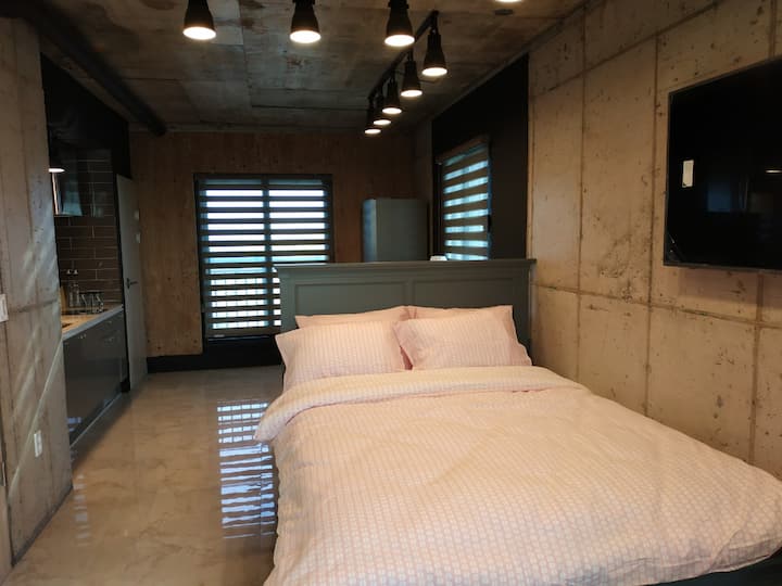 Sustay ממוקם באמצע מזרח ג'ג'ו, וזה לינה נוחה עבור עד שני אנשים בעת נסיעה למזרח ג'ג'ו ואזור Seogwipo. האירוח הוא בניין חדש בן שלוש קומות עם מעלית והוא מורכב מתקרות גבוהות, בטון מודרני וריהוט קלאסי על רצפת השיש עם ערכת מלכה.