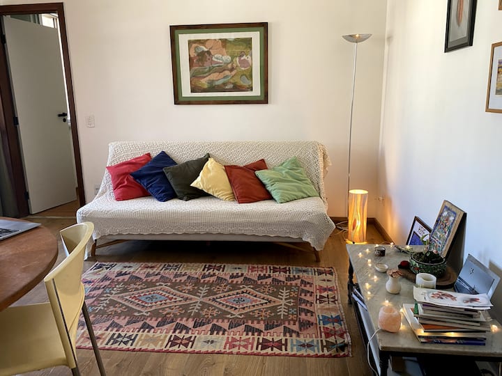 שלום, אני אמן ופרופסור באוניברסיטה הפדרלית של מינאס ז'ראיס. יש לי בית בפאתי בלו הוריזונטה ודירה בלב סוואסי, שאני מעמידה לרשות האורחים כשאני לא ב - BH. ברוכים הבאים!