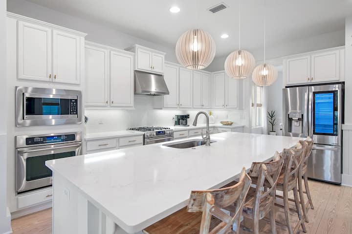 "זמנים כאלה" מבטיחים שנת לילה נינוחה עם מזרנים איכותיים בכל חדר שינה. הנכס כולל גם תנור מגוון, מקרר עם מכונת קרח, משטחי גרניט יוקרתיים וארונות בהתאמה אישית לאורך כל הדרך. עם שולחן אוכל ל -8 אורחים ואי מטבח עם 4 מקומות ישיבה, הוא מושלם למפגשים.