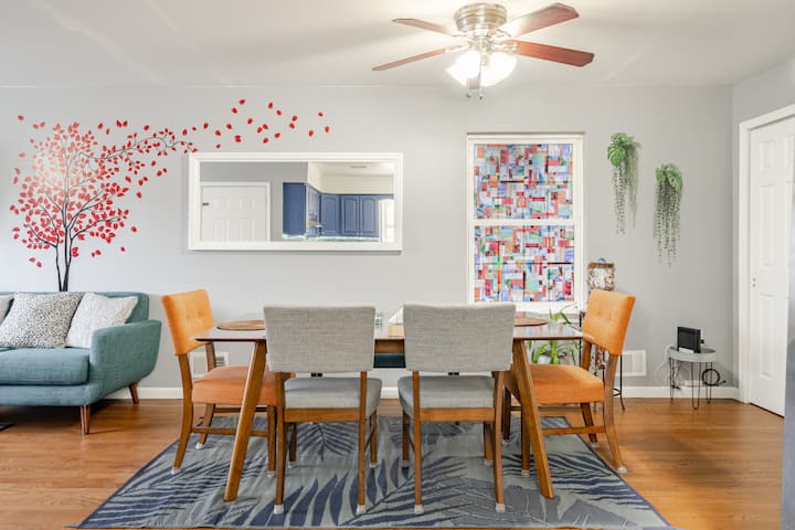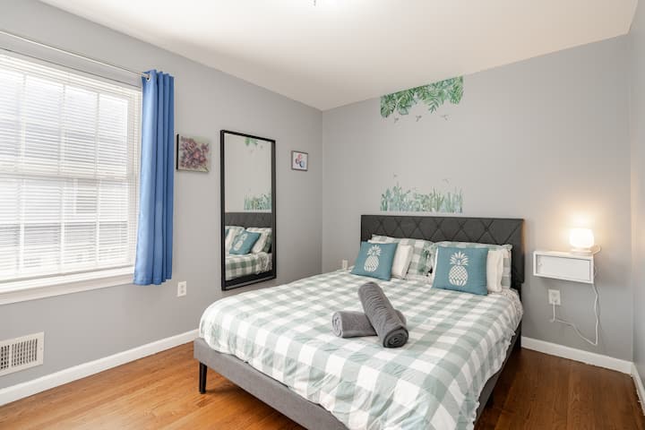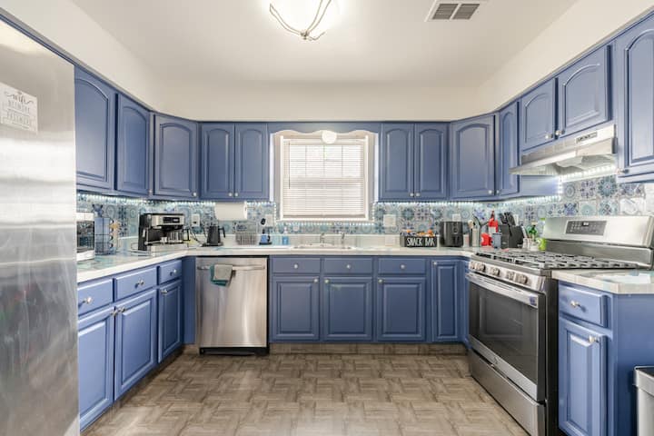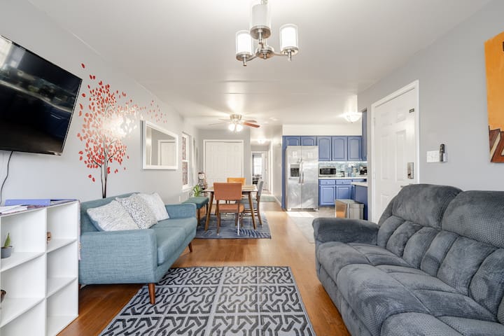 הנכס נמצא בקומה השנייה של בית בן שלוש קומות. יש לו כניסה ראשית משותפת עם דירה אחרת. מכשירים חדשים. מטבח משופץ. בדירה שלושה חדרי שינה עם מיטת קינג סייז אחת, 2 מיטות קווין סייז ומיטת טווין אחת, 2 חדרי רחצה מלאים, חדר כביסה עם מכונת כביסה ומייבש חינם ביחידה, מטבח מסוגנן, פינת אוכל וסלון. טלוויזיה חכמה עם נטפליקס אוויר חם או קריר מרכזי עם תרמוסטט Nest. מדיח כלים, אספרסו ומכונת קפה, קומקום מים חשמלי, מיקרוגל.