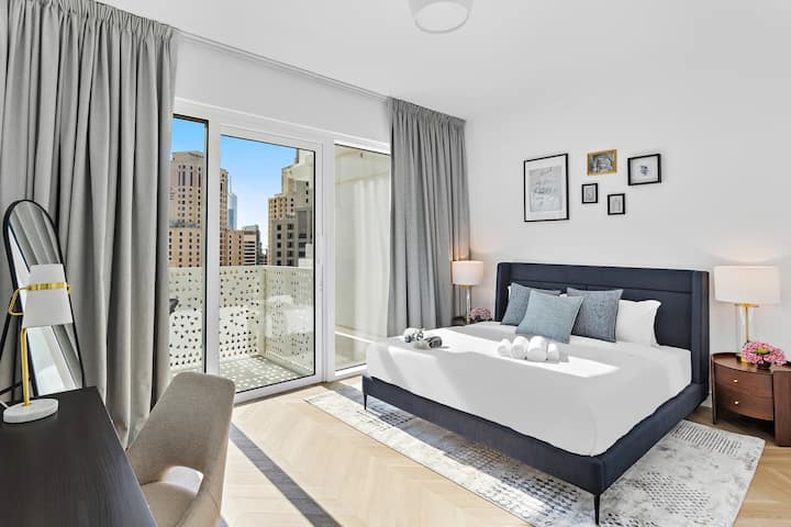 דירת חדר שינה אלגנטית ומודרנית ב-JBR עם גישה לחוף הים