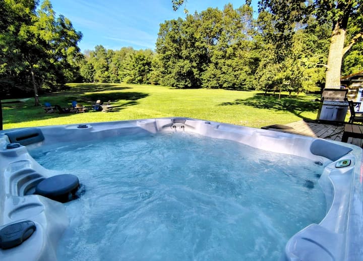 בקתה יוקרתית יפה ומבודדת עם ג'קוזי.
