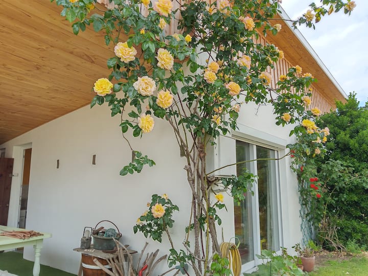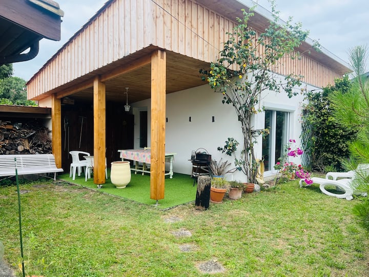 וילה עם גינה סגורה ומיוערת הממוקמת ברדיוס של 700 מ' מחנויות, מרכז העיר וחופי באסין ו -14 ק"מ מחופי האוקיינוס. מסלולי אופניים קרובים.