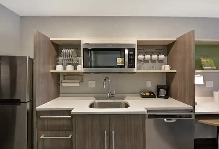 - מטבחון עם מקרר בגודל מלא, מיקרוגל, כיור ומדיח כלים, תוכלו ליהנות מארוחה ממש בסוויטה שלכם;