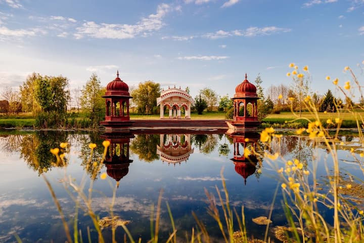 ומקדש עמק קרישנה נמצא במרחק של 1,800 מטר בלבד, שנמצא במרחק של כ -24 דקות הליכה על כביש מרוצף שמתפתל דרך הסביבה הטבעית הציורית של עמק קרישנה. כמובן, למי שלא רוצה ללכת, אפשר גם לנסוע לאט למגרש החניה מול המקדש.