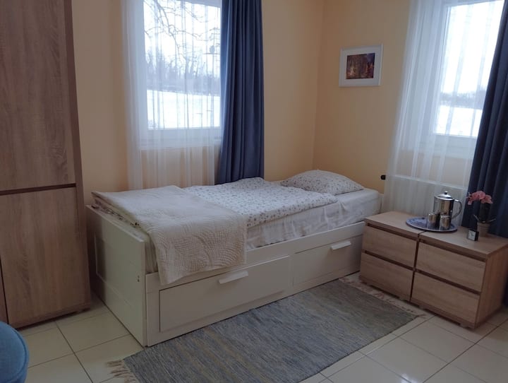 בחדר הקטן והנעים הזה, מיטת יחיד ממתינה לאורחים שלה, שניתן לשלוף אותה ולהפוך אותה למיטה זוגית, ובכך מספקת אזור מנוחה מרווח ונוח לשני אנשים. יש מלתחה וקולב לאחסון בגדים. ליד המיטה יש שולחן קטן ליד המיטה עם אור רך וקנקן מים מתוקים. כורסה נוחה משלימה את הנוחות של החדר.