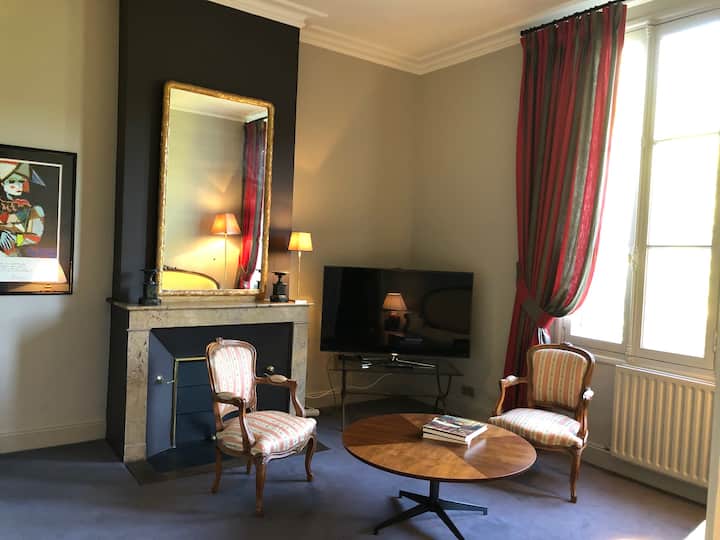( חדר שינה 5 ) LOUPIAC ממוקם בקומה 1 עם נוף לפארק הטירה, הוא מצויד במיטת קינג סייז זוגית (ניתנת להפרדה על פי בקשה), עם אמבטיה ושירותים נפרדים.