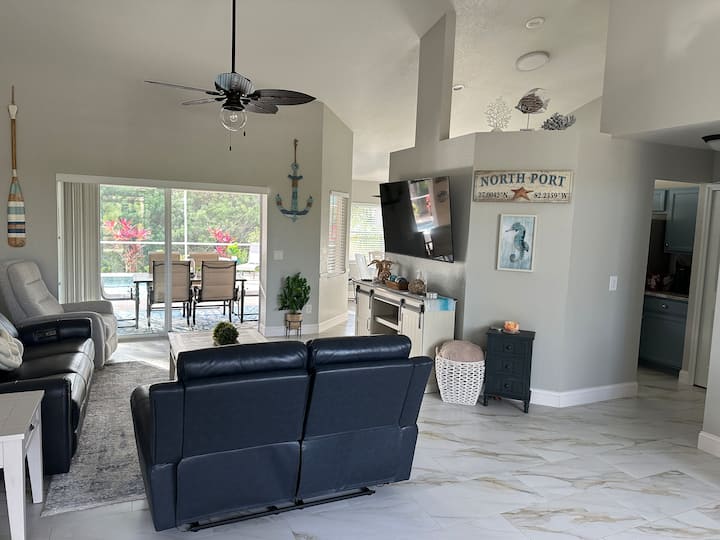 הבית נמצא בנמל הצפוני על גבול פורט שרלוט במחוז סרסוטה. במיקום מרכזי הרחק מהתיירות המרכזית, נוח ל - I -75 ול - SR 41, ומספק גישה נוחה למספר חופים, קניות ומסעדות. לא רק שזה הנכס המושכר שלנו, זה הבית השני שלנו, אז אני מקווה שזה יהיה נוח לכם כמו שזה יהיה לנו. אנחנו אוהבים את המקום ומקווים שתאהבו אותו כמונו.