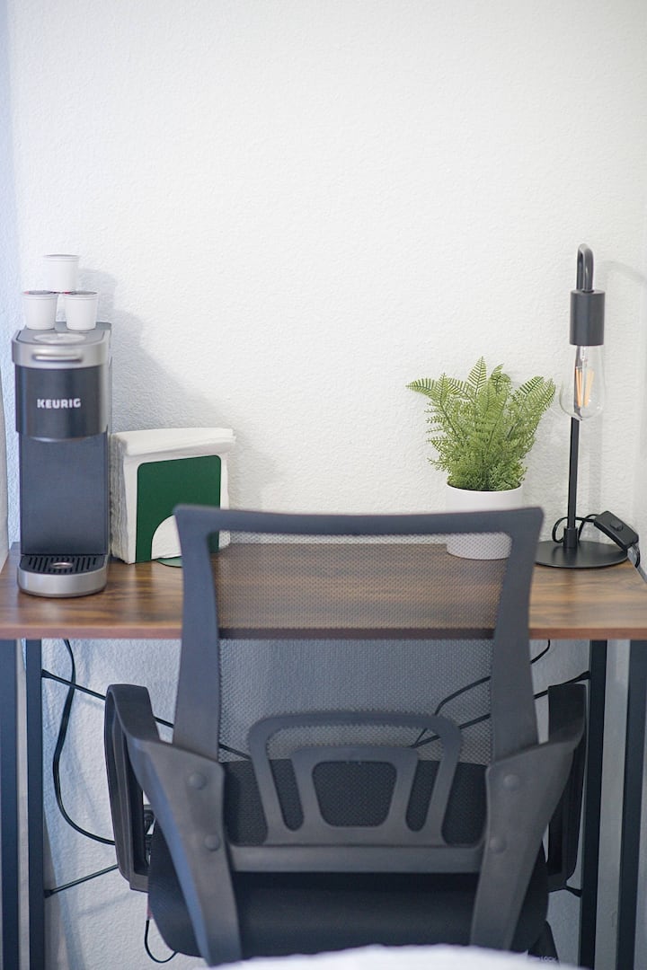 להירגע בחלל המואר והפתוח עם מיטת עור מפוארת ושולחן ייעודי לעבודה. הטלוויזיה מגיעה עמוסה ב - Amazon Prime Video, Apple TV, Disney+, HBO Max, Hulu, YouTube ו - Netflix (תוכלו להתחבר לחשבון שלכם) כדי לבדר את כולם.