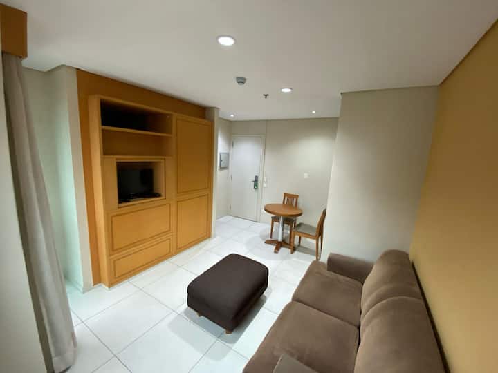 ברוכים הבאים ל - Brasília Santana Gold Flat במרחק של פחות מ -10 דקות נסיעה ממרכז אקספו נורטה ופארק אליאנץ. האורחים יכולים להירגע בסאונה היבשה, ליהנות מחדר הכושר לפעילות גופנית או לאכול משהו במסעדה. בנוסף, Avenida Paulista ו - Parque Ibirapuera נמצאים במרחק נסיעה קצרה מהאתר. לנכס יש גם גישה קלה לתחבורה ציבורית: תחנת סנטנה נמצאת במרחק של 5 דקות ותחנת קרנדירו נמצאת במרחק של 14 דקות הליכה מהאתר.