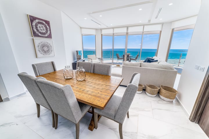 להתארח ביוקרה בדירת 3BR/3BA Oceanfront שלנו ב - Esmeralda Beach Resort בפוארטו פניאסקו. חללי הפנים המרוהטים והמאובזרים, יחד עם נופים מדהימים, מספקים את הנוחות והרוגע האולטימטיביים. תיהנו מהמטבח ומהפינת האוכל המרווחים, חדרי שינה נעימים עם נוף לים ומכל השירותים לאורח באתר הנופש. אתר הנופש מתגאה בעיצוב מודרני עם חלונות זכוכית כחולים שמשקפים את ים קורטז, מה שהופך אותו למקום המושלם