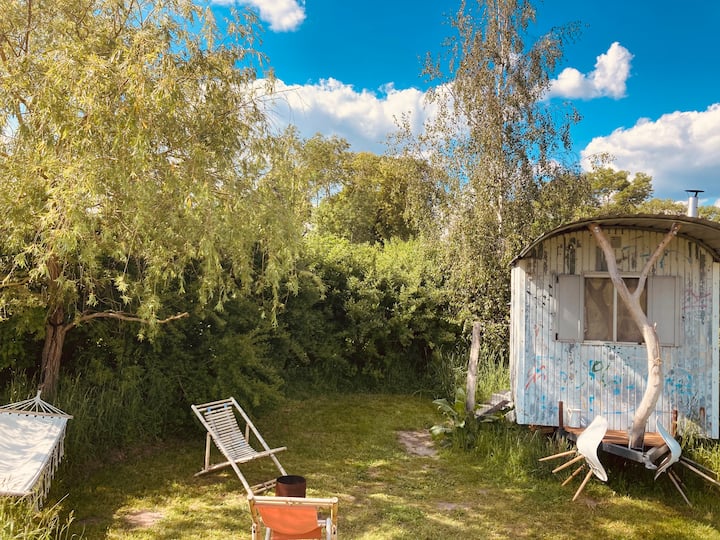 קרוואן בטבע עם אח. ים-יער-שטח פתוח