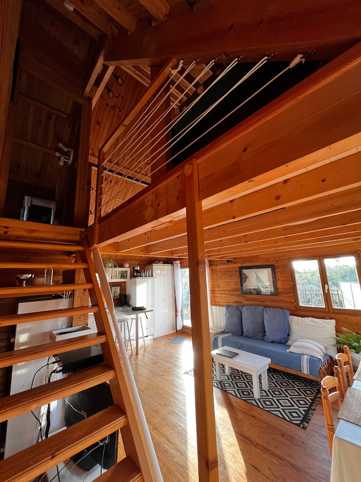 בית עץ עם נוף לים באוריניי וגינה