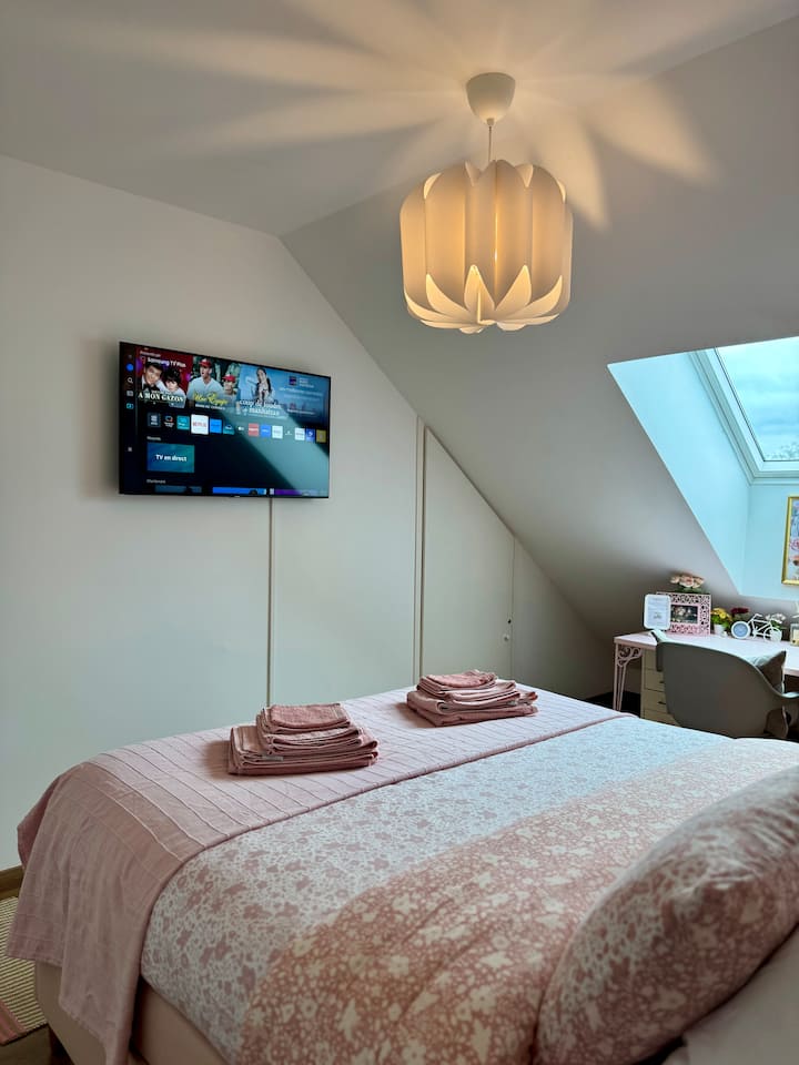 חדר גדול עם טלוויזיה + חניה בבית פרטי