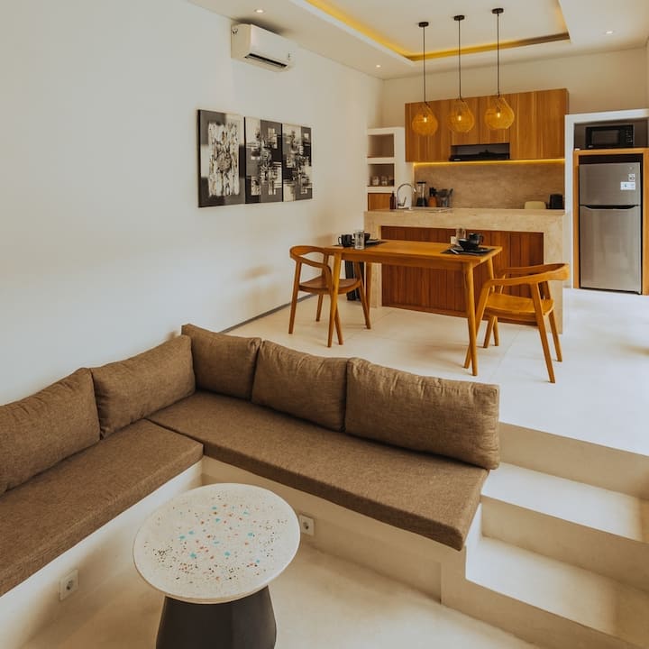 דירת חדר שינה אחד ב-Canggu הים תיכונית | אמבטיה, בריכה וחדר כושר בקרבת מקום