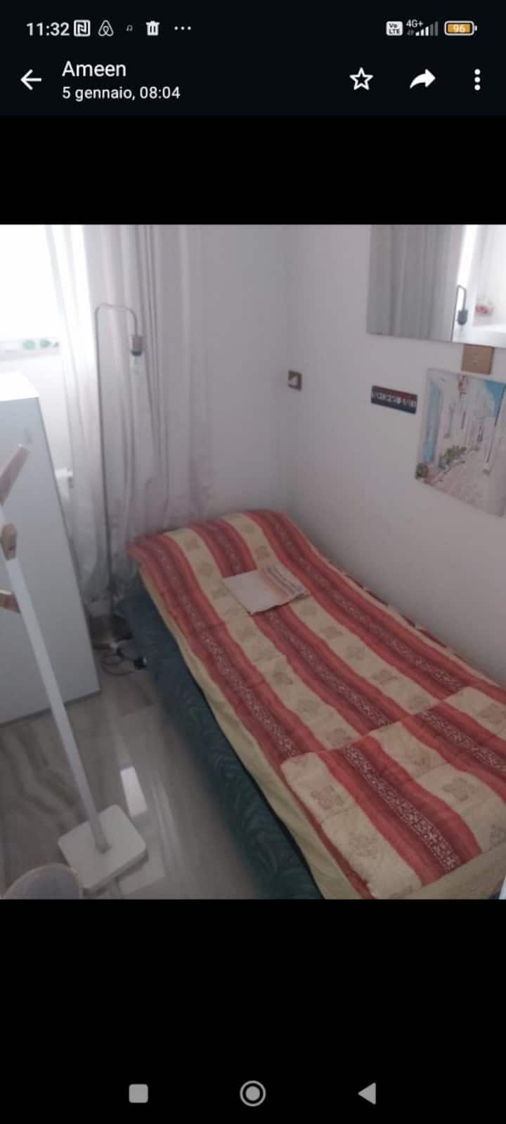 חדר פרטי קטן עם מיטת יחיד צ'ק-אין 24/7